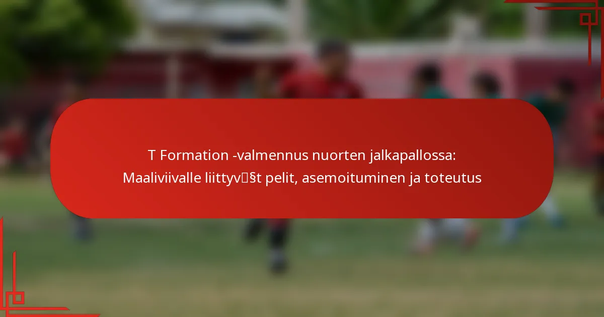 T-muoto on klassinen hyökkäysasetelma nuorten jalkapallossa, joka korostaa vahvaa asettelua ja toteutusta. Keskeiset asettelu strategiat keskittyvät pelaajien sijoittamiseen maksimoidakseen tehokkuuden maaliviivapeleissä, varmistaen, että jokainen pelaaja ymmärtää roolinsa ja vastuunsa.